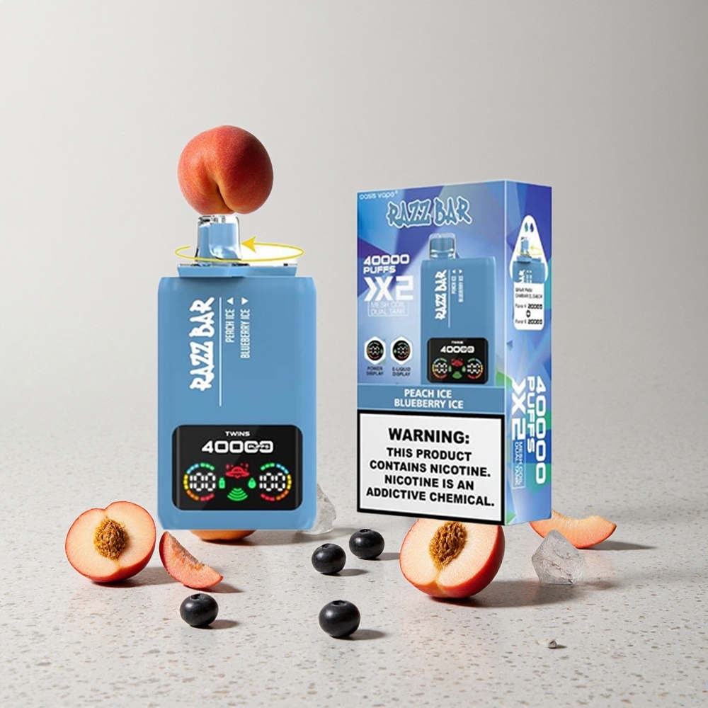 Razz Bar 40000 Puffs Egyszerhasználatos E-cigaretta Őszibarack Jég Áfonya Jég, Kijelzős Tápellátás, 1.0Ohm 2 Mesh Coil